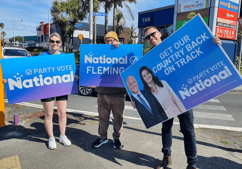 Andrew Bayly, National list MP running in the Port Waikato byelection on November 25, is committed to corflute, seeing it as “the only viable option for outdoor signs as it is robust and enduring”.