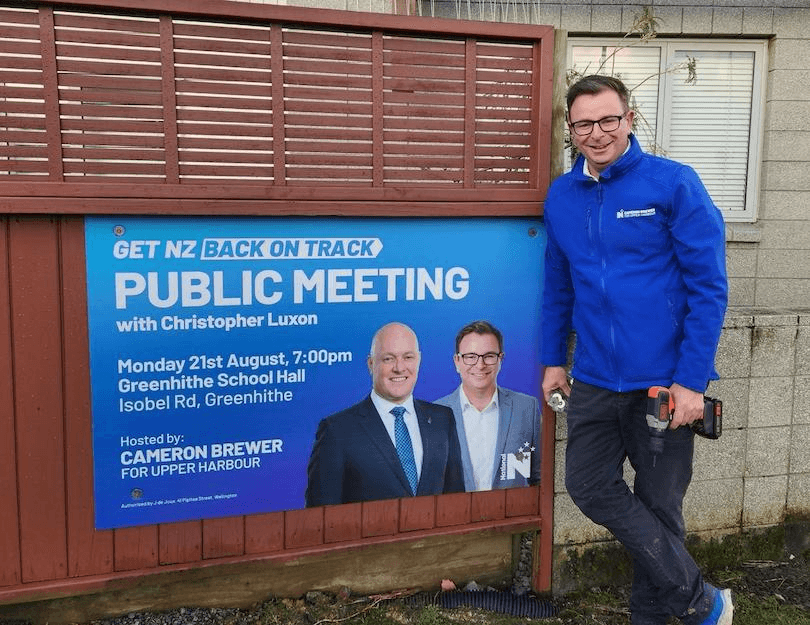 New Upper Harbour National MP Cameron Brewer, meanwhile, mused that “given the rusty nature of the bolts, screws and washers [used on hoardings]… they would go back to the early days of Paula Bennett”, who held the seat for National from 2014 to 2020.