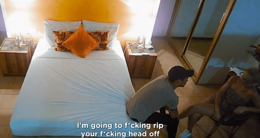 For a show that actively encourages couple swapping, bed hopping and even youngins bopping, Heartbreak Island comes down hard as hell on ACTUAL cheaters. Last night, when it was revealed that Sam and “ex” girlfriend Hannah were actually STILL together and had been apparently CONSPIRING to win the show and LYING to everyone, Mark Dye wasn’t happy. Mark Dye was blue. Mark Dye was cyan. They both got kicked off, and it was awesome tbh. Sorry, hectic.