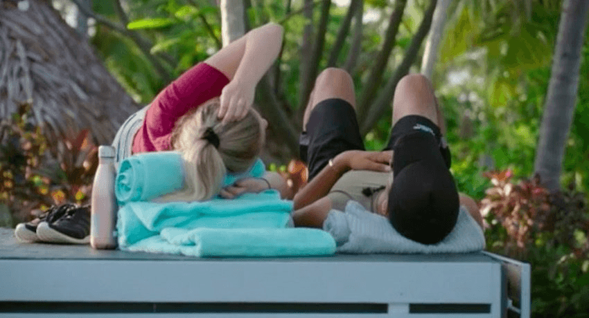 After laddy lad CJ tired to kiss Helen, the other lads decided that it was “not on” and decided to call a very serious meeting down by the pontoon. “First of all, we need to run through last night’s shenanigans,” said Chairman Vaz incredibly sternly. As it turns out, the girls were hiding in the bushes the whole time and heard everything. Classic stitch up.