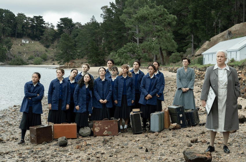 The difference is that this story is taking place in Aotearoa. It’s 1954 inside Te Motu School For Incorrigible and Delinquent Girls, an institution established on an island formerly populated by lepers. “If the island can contain leprosy it could probably manage a few girls on heat,” one of the male head honchos says. Ruled by a withering woman known only as The Matron (Rima Te Wiata) – who interrupts the above dancing and punishes accordingly – the island faces a huge threat in a rebellious trio of pals plotting to bring it down.
