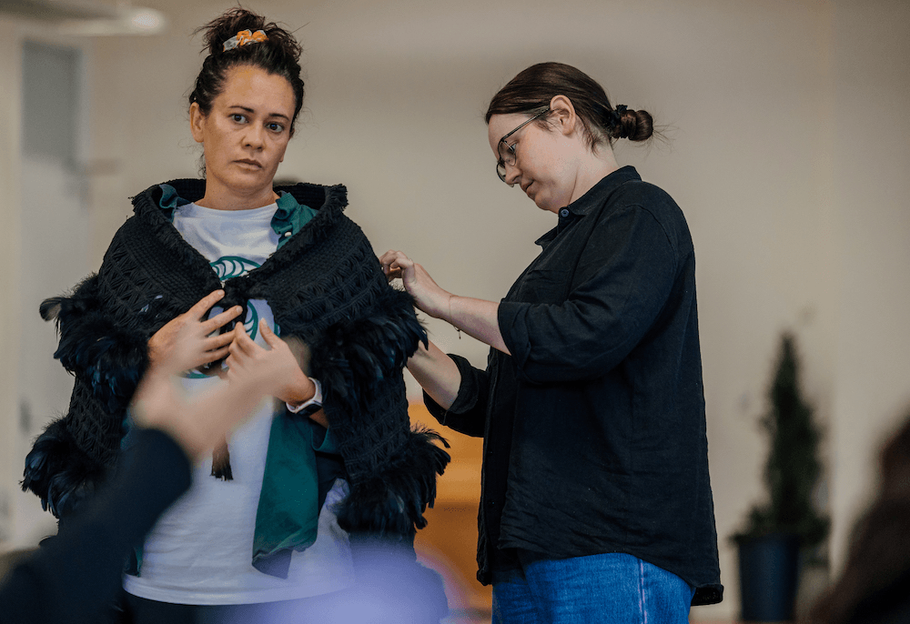 When the show was announced in 2024, it was going to be performed twice a night – once in English, and once in te reo – but when it premieres this week, it will instead be performed once a night, moving between both languages fluidly. This decision was one of many that came out of wānanga throughout the year to develop the script, specifically to breathe life into the reo of the script. “You lean into a rehearsal period knowing that you’ll know some answers, but won’t know all,” explains McDowell. “But in the wānanga process, there’s a little more breath and time. You’re allowed to ask, and you’re allowed to discover as you go. It’s been a beautiful journey of discovery.”