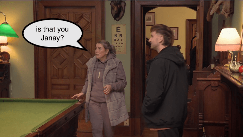 Nobody wants to be the first one sent home, especially when you went to all the trouble of finding a missing eyeball in a room full of haunted dolls wearing no pants. “I have a small feeling that I did too much,” Janay admitted, having made the classic error of “being an all round threat” and “thinking about the game”.