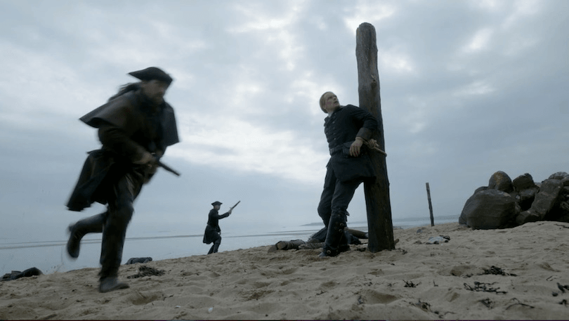 Jamie Fraser wasn’t dead in a jar, but he was about to be put on a ship to Scotland. The season finale didn’t reveal who killed Malva, or show us what Roger looks like with short hair, or whether Lizzie regrets using the words “shrivelled like raisins” to describe sex with the Beardsleys. What we did learn is that Young Ian has impeccable timing, and that it takes a lot more than being tied to a pole on a beach in the middle of nowhere to get the better of Jamie Fraser.
