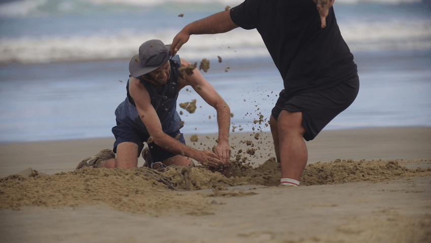 With his fellow competitors thoroughly “pissed off” going into the final treasure-hunting challenge, it made for a tense finale challenge. Courtenay Louise, who Tuke describes as “an absolute powerhouse”, stayed on his tail throughout building rope bridges and doing puzzles, but was foiled at the final dash by a fall that saw the contents of her bag spill across the dunes. Elvis Lopeti was hindered by some diversion challenges, but basically won the moment of the finale for sprinting down the beach in a crop top yelling “Mate Ma’a Tonga” despite being dead last.