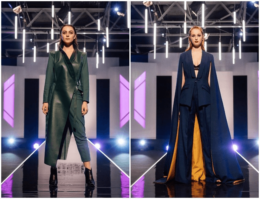 Judy, the gown-maker with no tailoring experience, did pretty well. I love that she went for the green, a bold and difficult choice. And the leather is cool – I agree with the judge who said there should have been more of it. I like the use of the tech fabric too. There is a little bit of that high-end, super-expensive Nike stuff that it makes for the fashion workout market. And the warrior vibe plays into that too.