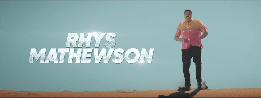 0:32 – Rhys Mathewson (comedian, one t, definitely somehow tap dancing on real sand).
