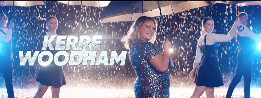 0:49 – Kerre Woodham (media personality, Ready Steady Cooker, smiling bravely in the face of seven years bad luck vis a vis opening umbrella inside).