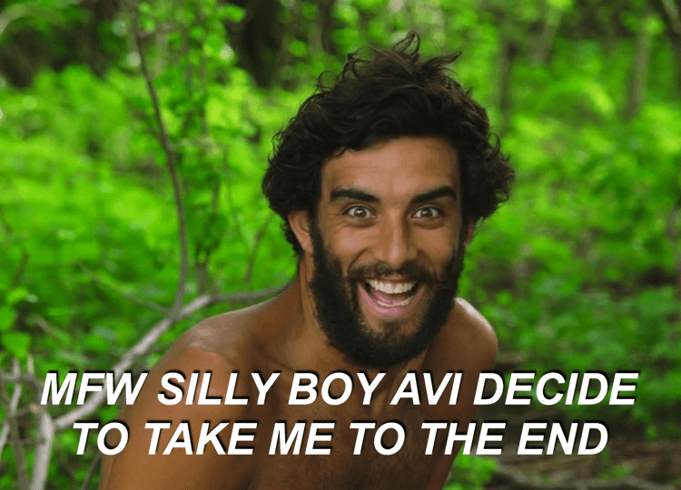 I mean he definitely would have won against Barb and Nate, right? What do you think? Was it a good idea for Avi to ditch two people that the jury kind of despised, just so that he could sit beside his best mate who is universally respected and beloved?