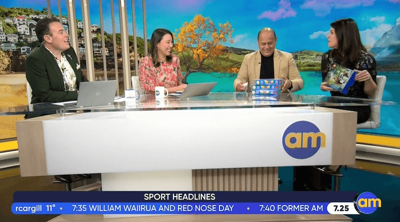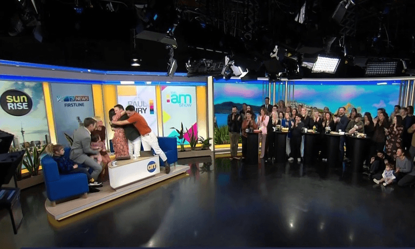 It really was business as usual, for a bit. The show began with a serious interview about screen time guidelines in schools, which made me wish Burr would bust out some more Daft Punk finger guns. There were stories about the cost of living, the British election and the upcoming All Black test. MPs Willie Jackson and Erica Stanford joined the final political panel and came bearing gifts. Stanford bought some autographed structure literacy reading books for Chan-Green’s children, and a box of Lego for Burr that she’d forged the prime minister’s signature on. Jackson handed out three jumbo boxes of Roses chocolates, a fitting final come box for one and all.