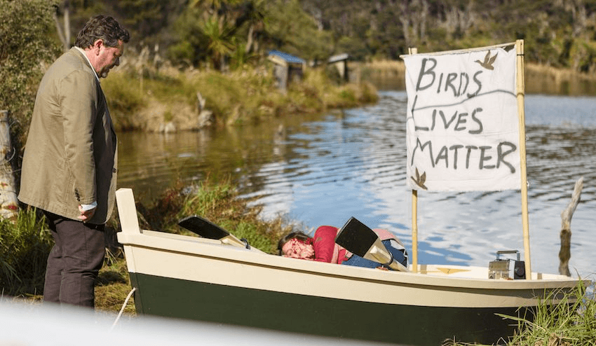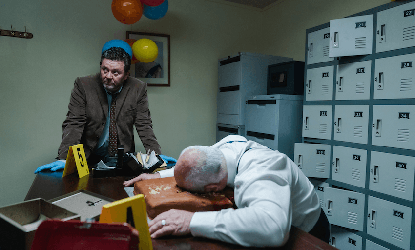 As Nic Sampson, who played Breen, told The Spinoff in 2017, nobody is ever safe in the Brokenwood postcode. “You might think that joining a debate club, or kite flying will be harmless enough… but somebody will still find a way to murder you in a poetic way with your hobbies.” Given that The Brokenwood Mysteries has been running since 2014, perhaps it’s no surprise that each murder scene seems to be more outlandish and surprising than the last.