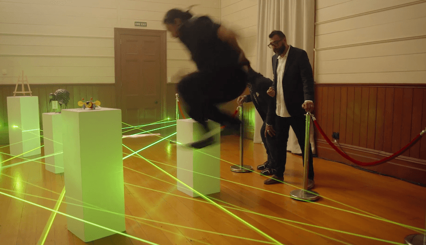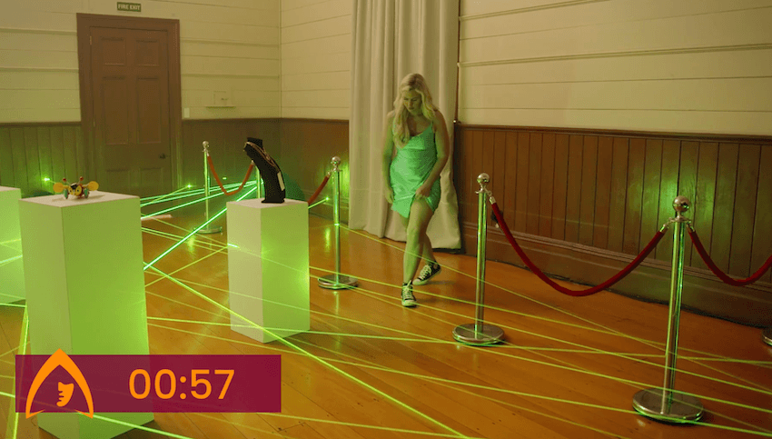 What a glamorous final week for former police officer Julia Vahry. First of all she donned the world’s most impractical aquamarine cocktail dress to jump over laserbeams with in the art heist challenge, announcing it was going to be “dinner and a show” for the audience. As Yves Saint Laurent once said: fashion fades, but hiking your dress up to jump over a laser beam to try and steal Paul Henry’s $200 buzzy bee is eternal.