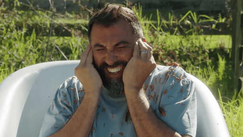 “Brian, do to they bite?? They are feeling really itchy!!” Brooke pleaded as the cascade of cockroaches rained down on him. “Why would they be, why would they beeee??” he squealed, as his earplugs fell out and the cockroaches made a beeeeeline for every available orifice. “You forget about the maggots because the cockroaches are so active,” Brooke heaved. “Argh! Argh! I just want to live- argh! Now they are right up in my pants.”