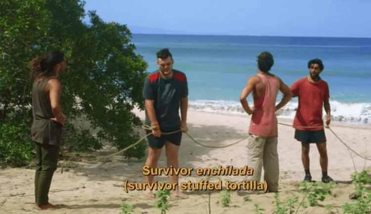 Call me casual, but I did not foresee a massive plate of chips being part of the merge feast. Speaking of divination, congrats to my brother who had $5 on the phrase “survivor enchilada (survivor stuffed tortilla)” appearing as a subtitle at some point during the season.