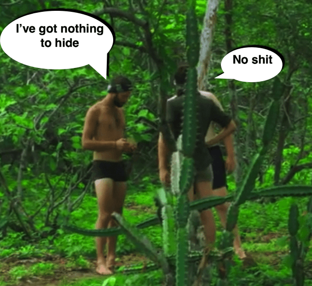 Maybe I’m naive, but I have a feeling the alliance formerly known as Boytown are going to 100% overlook their own exhaustive alienation of their fellow tribe mates and instead 100% blame Shannon for their demise. Even though I’m loving Shannon and her cool sneaky gameplay, I don’t like the outlook for Geraldine’s finest.