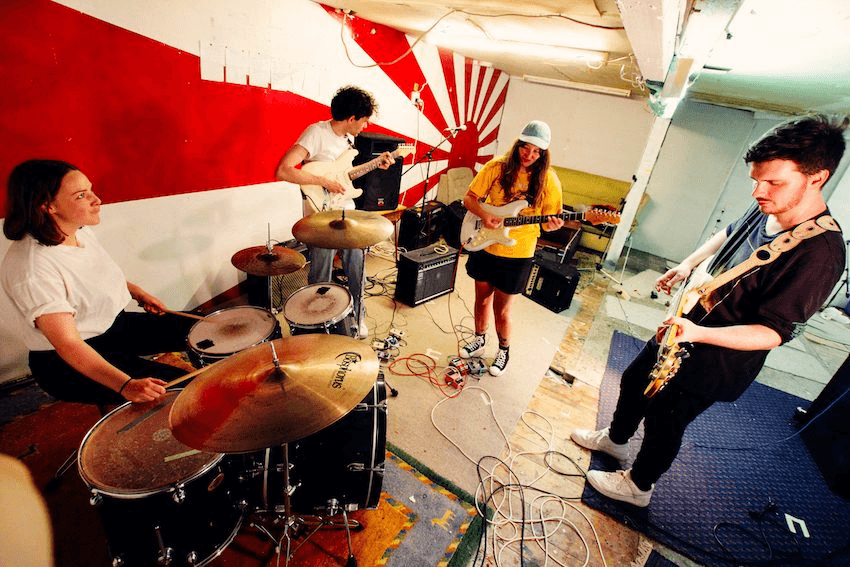 It’s a warm Tuesday evening. Inside a warehouse practice space in Newtown, Wellington, Lucy Botting, the lead songwriter of breezy guitar-pop band Girlboss and her bandmates – Darian Woods, Douglas Kelly, and Olivia Campion – are joking around, and explaining a bit of what led to their dreamy debut EP Body Con, released earlier this year by boutique local label Ball of Wax. In the same spirit as Botting’s first Girlboss song ‘Miss Doubtfire,’ a low-key SoundCloud cut that popped up on prominent music blog Gorilla Vs. Bear in 2016, the five songs on Body Con trade on faded Polaroid nostalgia, understated pop-culture in-jokes, and wistful introspection, all underpinned by a sturdy inner strength.