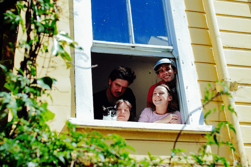 Although she was already an experienced singer and keyboard player, Botting was learning guitar and began recording demos. She came across the term Girlboss, liked its assertive connotations, and used it as an alias when she uploaded ‘Miss Doubtfire’. Not long afterwards, Woods returned to Wellington from the US, where he’d spent the last two years completing his masters in public policy at UC Berkeley and interning for NPR. Excited by Botting’s music, he offered to help expand it into a band.