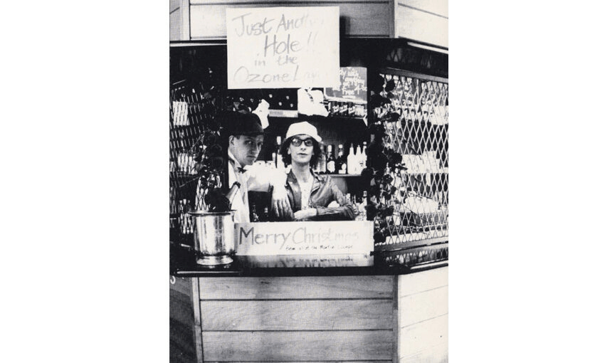 This is Kevin the Hat, possibly the most famous and beloved cocktail barman in clubland and proprietor of the infamous Dean Martini Club (the rulebook is on the group page) which was first at Le Bom in Nelson Street and then here in Anzac Ave’s Station Hotel. This Christmas card features Kev’s assistant, the always trusty and equally loved Ron.