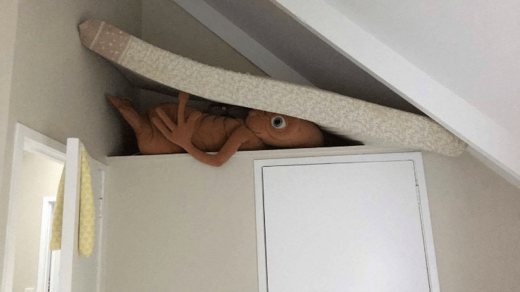 The point, Elyse, is that my partner will leave me if I put my maybe cursed, definitely larger-than-life-size E.T. on display in the house. That’s why it lives here, on top of the cupboard where it can’t frighten anyone: