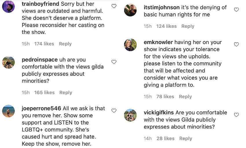 “Why are you deleting comments when you should be deleting the show,” one user wrote on Instagram.