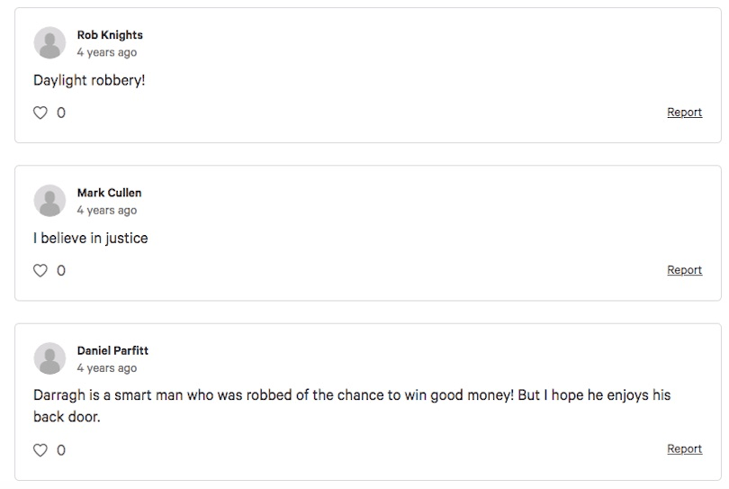 Exactly. All Ennis wanted was enough money to buy a new back door, but he barely got it. Viewers were outraged on Ennis’s behalf, even launching a petition titled “Justice for Darragh”. Eighty-four people signed that petition. It worked a treat.