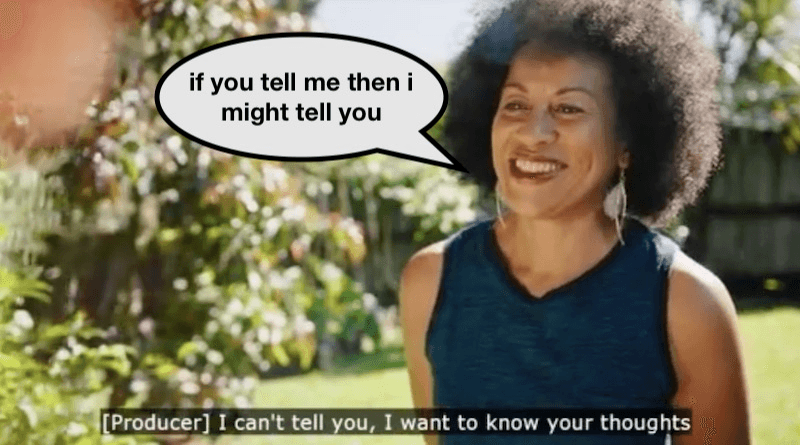 After grilling Aaron for what felt like an hour, including asking him what the square root of 361 is, Lesina’s mum refused to even let the producers know what she thought of him. A mysterious icon, a walls-up wonder, a very clear blood relative of Lesina the question assassin. The Riddler could absolutely, positively, never riddle this hard.