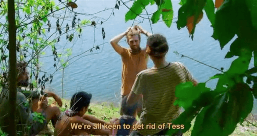 Tess realised her time on Survivor might be coming to and end – probably tipped off by the fact that her entire tribe had gone off to talk without her. That’s when Tess absolutely snapped.