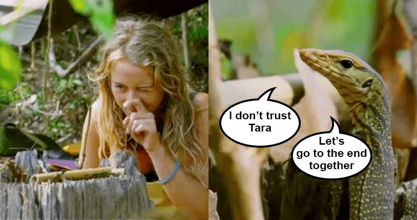 That’s right, Tess joined an alliance with a Lizard named Buster. Like some kind of Survivor Eliza Thornberry, Tess was having full on strat chats with this cold blooded reptile, as she proclaimed that it was her only alliance left on the island.