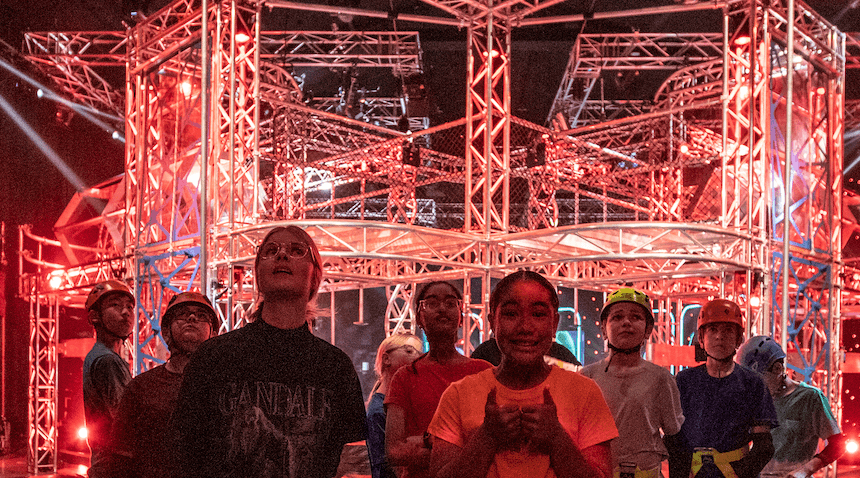 Next up in my journey is the Brain Buster obstacle course, an enormous Ninja Warrior-style steel apparatus. We are kitted out in harnesses and helmets and a crew member takes us through safety protocols. Heaven, my greatest ally and worst enemy, can tell that I’m nervous. “Don’t worry, it’s really technical,” she whispers. The group of kids rush excitedly from station to station, while I hobble behind to keep up. “Everyone be careful of Alex!” Heaven tells the group. I’ve never felt both so taken care of, and so much like a crumbly old Cruskit, in my entire life.