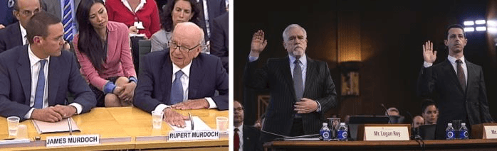 In Succession, directly after the Tom and Geri show, mogul Logan Roy is hauled before a US senate subcommittee, alongside his son, Kendall, to defend the ethical behaviour of his media conglomerate after it has become embroiled in scandal. Which sounds eerily like July 2011, when mogul Rupert Murdoch was hauled before a UK parliamentary select committee, alongside his son, James, to defend the ethical behaviour of his media conglomerate after it had become embroiled in scandal.