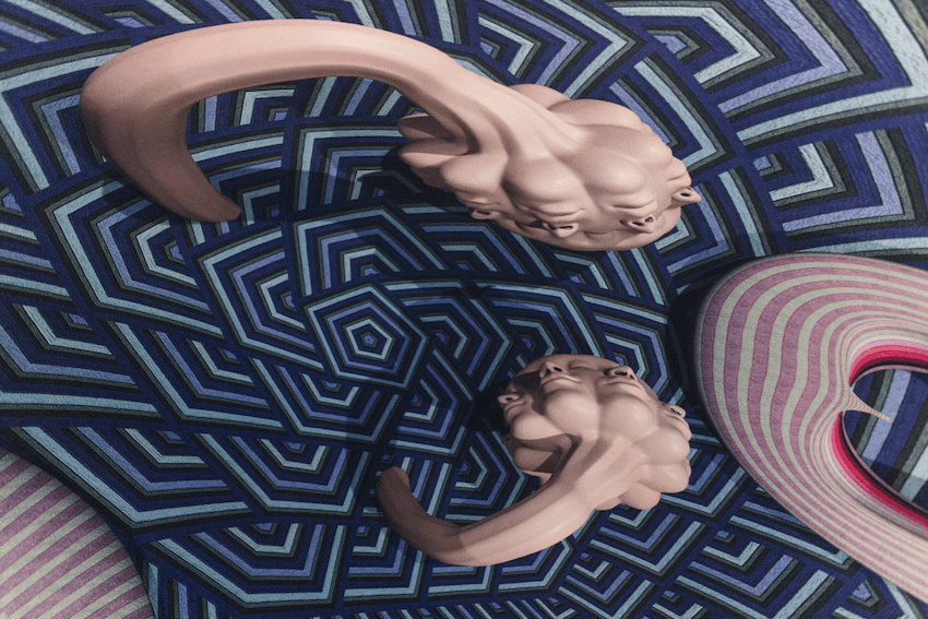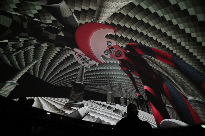XYZZY, which premiered at the Otago Museum and sold out 14 sessions in its Melbourne showing, is a trip. It has a barely detectable narrative – viewers travel through generated, impressionistic worlds where patterns repeat themselves over and over – and so it mostly feels like a vehicle to switch off from the real world for 50 minutes and be plunged into the worlds of Johnson and Ward. Johnson’s compositions – which include disconcerting flesh sculptures, fuzzy worms, and Harlequin-esque figures – are animated into circular, rotating patterns. It is, for want of a better phrase, buzzy as hell.