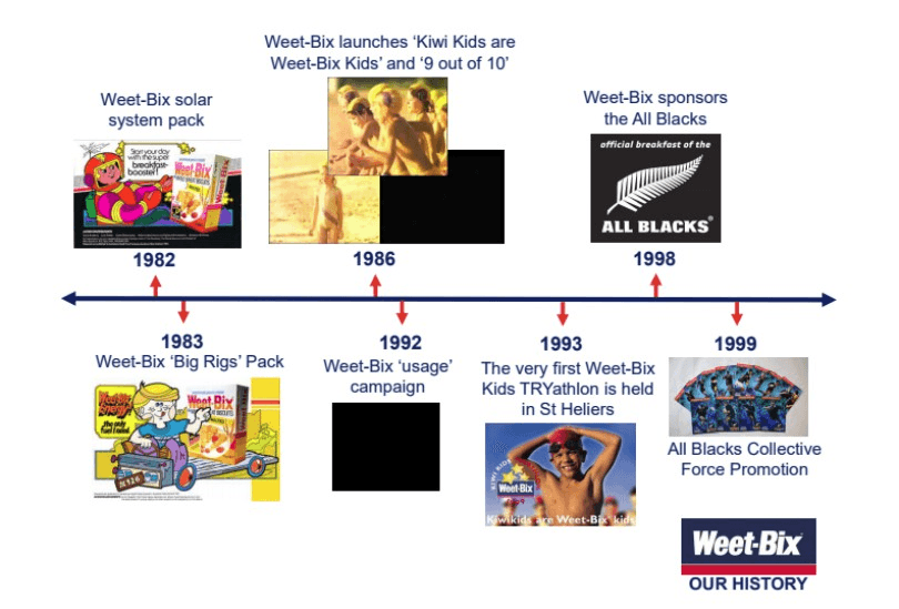 An hour or so later, an email arrived from Sanitarium. Jaclyn enclosed a timeline of Weet-Bix in New Zealand which firmly planted the Kiwi Kids campaign as beginning in 1986.