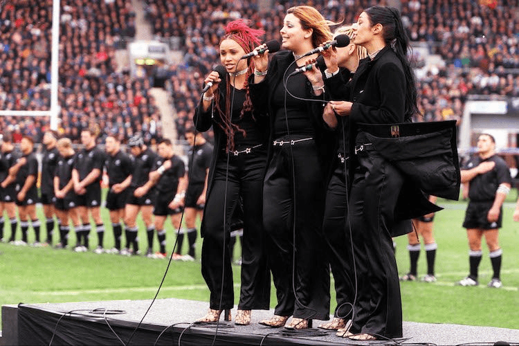 Megan: Thank you. This was such a special day for us, it was the battle of the codes, it was the battle of the Tasman Sea, it was the battle of the Popstars, it was everything. This was actually the first time that we sung the national anthem in te reo, which was quite instrumental for us. We decided together that we were just going to sing it a capella and how it’s supposed to be. Bardot sung the Australian anthem but they had recreated it and totally ballsed up their version.