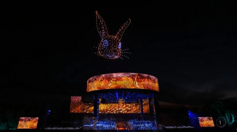 We were promised a high tech light show, and we got Peter Rabbit hovering over a castle. A thousand drones across the UK flew into the sky and made shapes like a watering can, a butterfly and a big blue whale, as the crowd cheered like the King had just discovered electricity. Maybe he had!