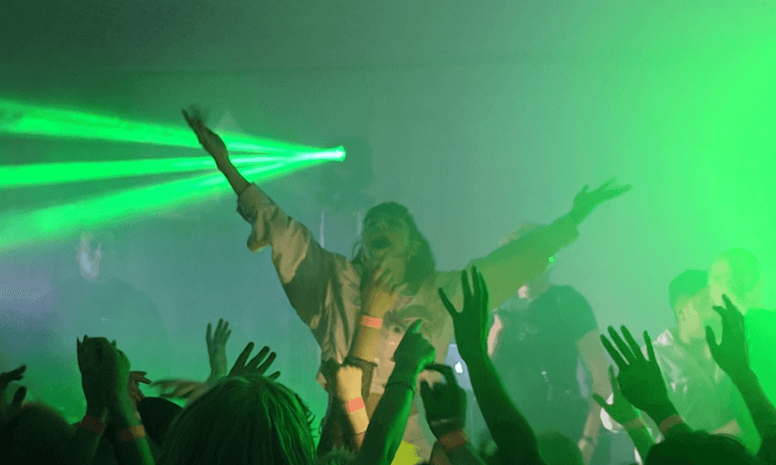A third of the lineup will be playing in Aotearoa for the very first time, including British neo-soul star Olivia Dean, LA shoegazers julie, hip hop’s new arrivals Joey Valence & Brae, New York City’s Fcukers, UK dubstep DJ Hamdi, electropop artist 2hollis, and garage rock duo Skegss. Local offerings include two-piece drum-and-guitar band Elliot & Vincent, Taite Music Prize winner and The Spinoff contributor Vera Ellen, and IYKYK beatmaker and artist RNZŌ.