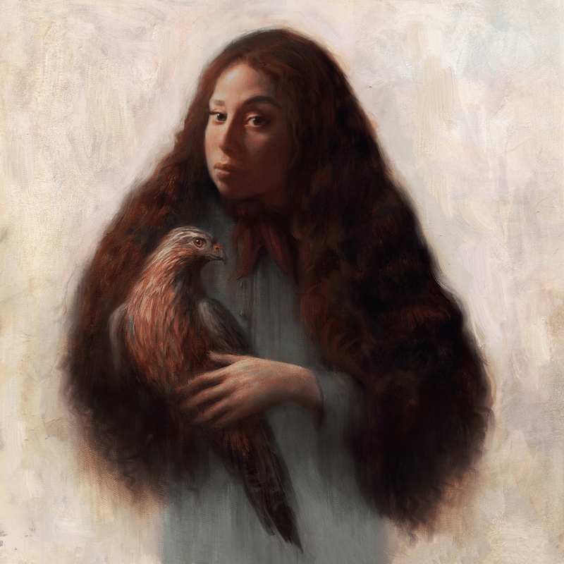 The artwork is a nod to the Māori portraiture of the 1800s in which Māori were often romanticised as the “noble savage”. I find it painful to see the hurt and loss in my tūpuna’s faces as they sat for portraits in the midst of oppression, war and land confiscation. Here my gaze is unapologetically fixed on the viewer: “You will not ignore me nor my people”. With me, in my arms, is the ever-present kaitiaki and taniwha of a kaahu, a manu rangatira representing divine power and authority. This portrait is the manifestation of the Te Kaahu kaupapa: to heal, restore and empower my people.