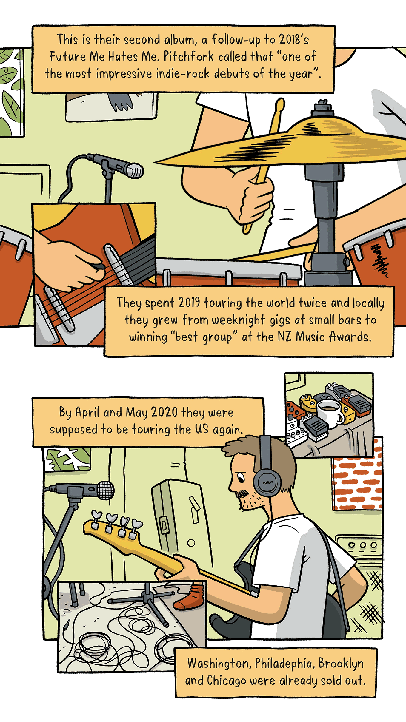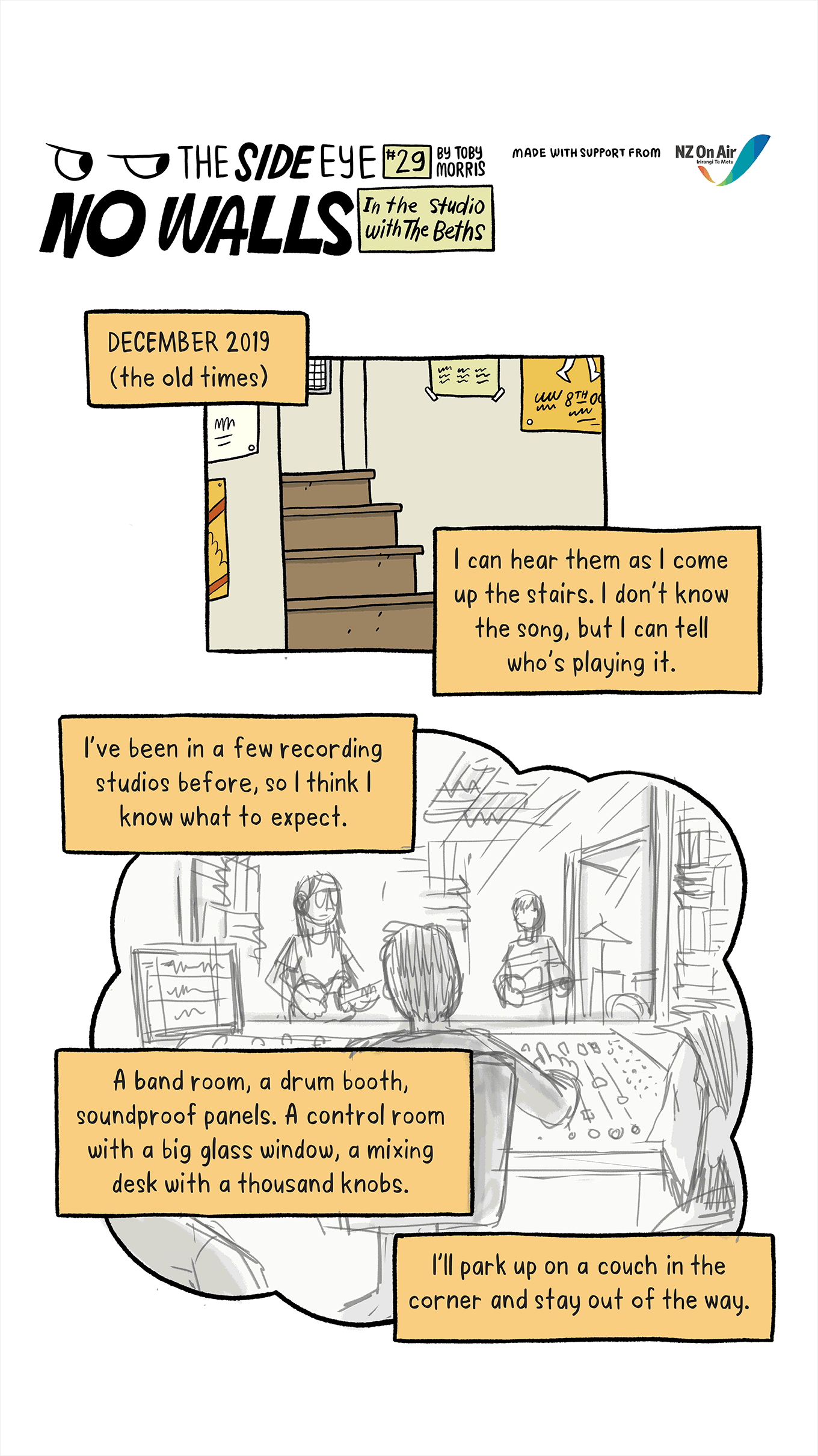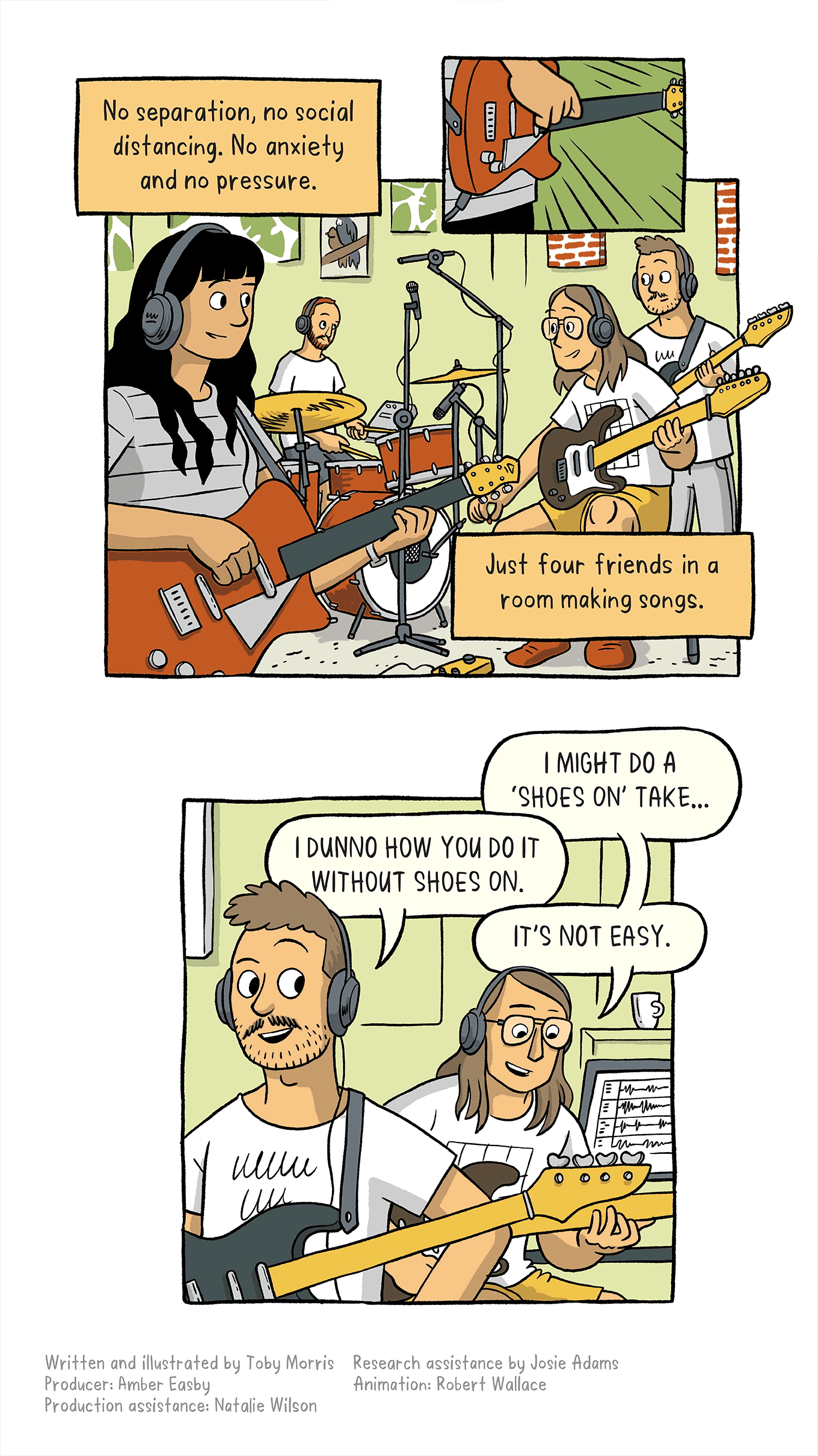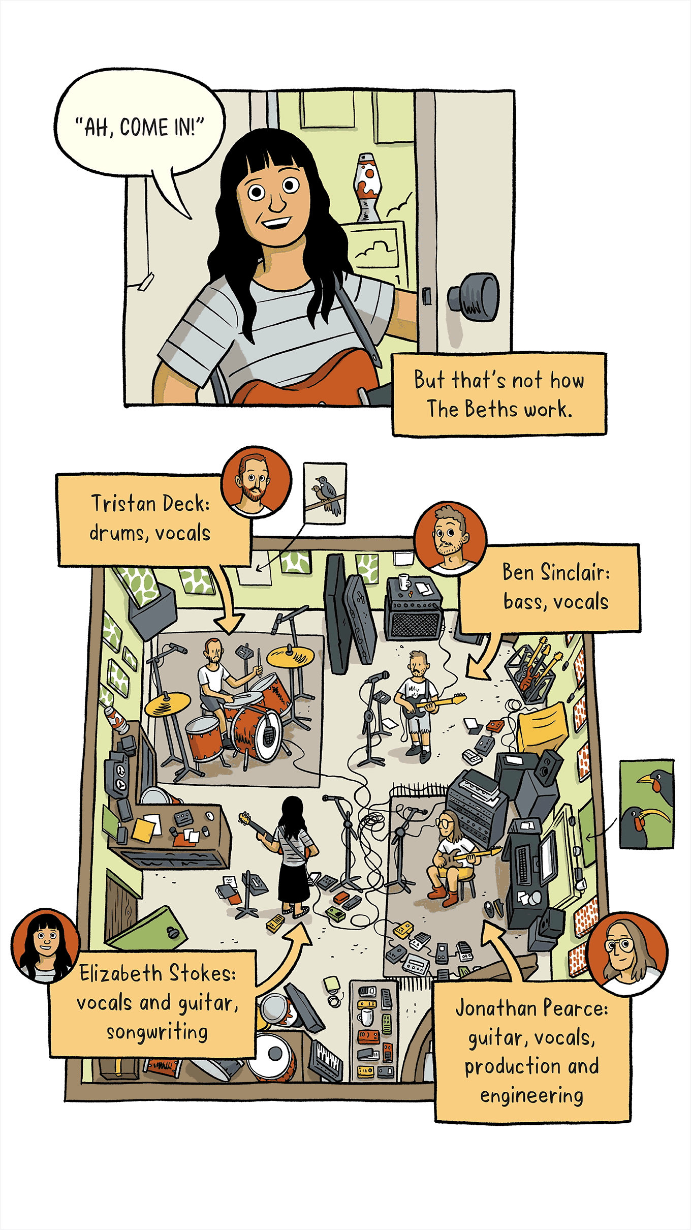 Cartoonist Toby Morris joins The Beths in the studio as they record ‘Just Shy of Sure’ off their 2020 album Jump Rope Gazers.