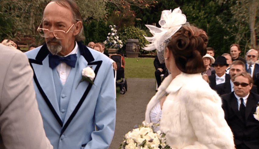 Van (Antony Starr) wore T-shirt that read “Guilty” in gothic font, but his twin Jethro (also Antony Starr) used fashion to send a different message. A newly-minted lawyer, his blousy shirts sharpened up by season two, where he goes shopping for trendy striped shirts and leather jackets on Ponsonby Road with Hayden (Shane Cortese with blonde highlights). Many of the suits were from Fifth Ave, Smith & Caugheys and Crane Brothers, with Murray Crane himself custom-making the baby blue suit (kitsch!) worn by Ted West for his wedding in season four.