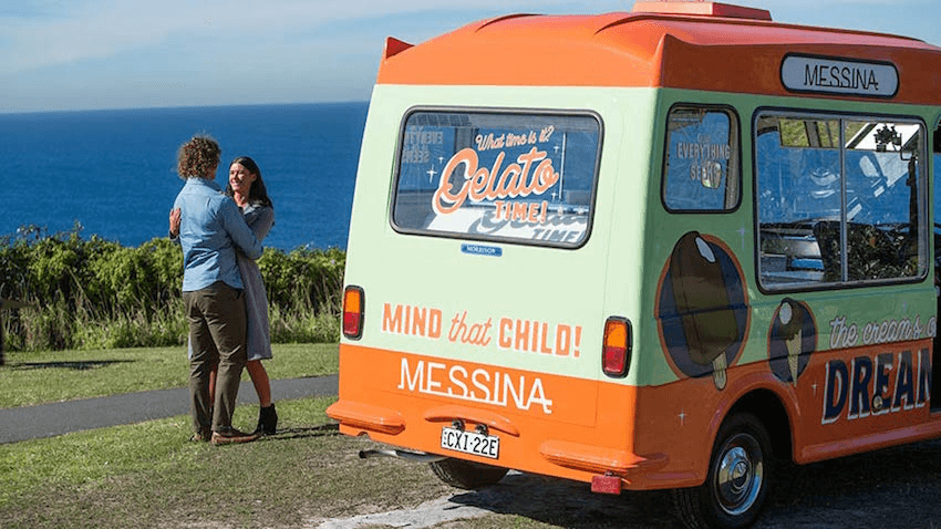 Brit starts the second date of the episode waiting atop a luscious green hill. Nick pulls up in an ice cream truck that reads “creams of your dreams”. Wow. Ironically, he only serves Brit sorbet, which is the antithesis of creamy, and perhaps another foreshadowing of what is to come.