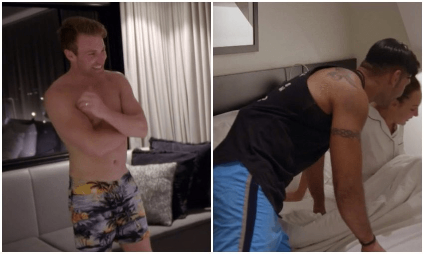 My panel of experts provided several different theories as to why their Aussie counterparts had “boarded up” so dramatically. The first was purely anatomical. “With cameras roving around there would be nothing more embarrassing than waking up tackle out on national TV,” said Dave McClelland from last year’s season of MAFSNZ. “After the deed has been done [and] a looming morning of cameras await, it’s easier to find some board shorts than skimpy undies.”