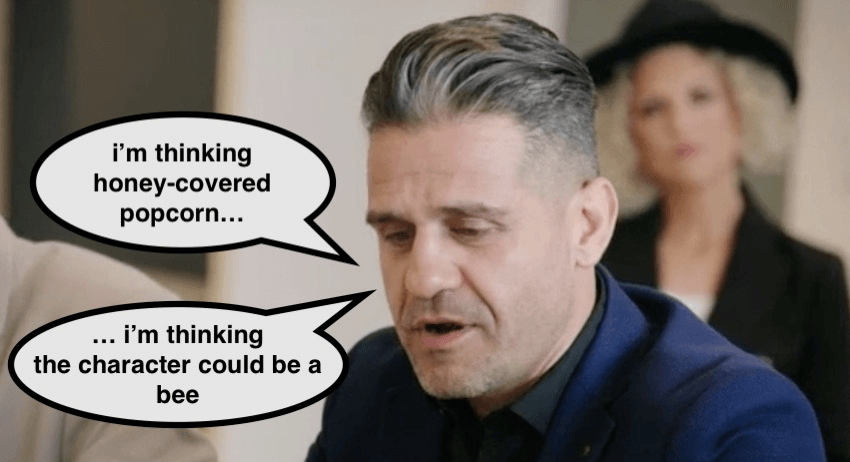 Unless, of course, the flies can’t taste the honey at all. The first challenge for our budding business-folk was to design a brand new popcorn brand for kids. Drawing upon his childhood in Afghanistan, Bari reminisced about a cart that sold honey-covered popcorn balls. From there, he was cooking with gas. This is what mentor Cassie described as “a brilliance bomb”.