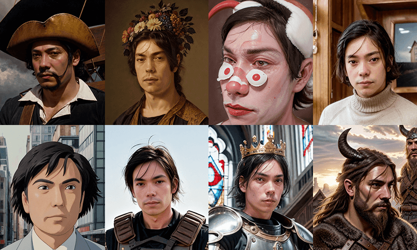 I almost never think about seeing myself dressed up like a cowboy in a painting, and I definitely never thought I’d see myself in a painting dressed as a cowboy with seven fingers on each hand. AI, it seems, may have mastered superimposing faces on other faces, but “hands” remain, somewhat ironically, out of its grasp. (Also, to be pedantic, these are not paintings. Paintings, as the name suggests, involve paint.)