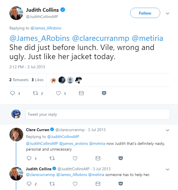 Dame Keating is married to a businessman; Collins is married to a businessman. Dame Keating has a reputation for being “tough and ruthless”; pundits absolutely love to call Collins tough and ruthless. Even ‘Crusher’ herself once tweeted: “Funniest phone call to the Papakura Office today from a good Labour supporter. She’d like me to ‘stop backstabbing Jacinda’. ? No problem. I stab from the front ? #Stronganddecisive.”