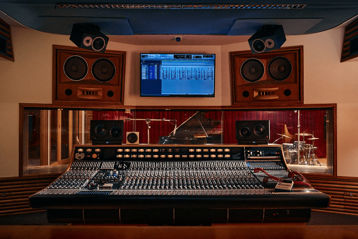 When he says “this room”, Finn is pointing out through the glass window. We’re sitting in the control room for Roundhead’s hallowed Studio A, a vast rack housing dozen of audio processors on one side, the colossal 8088 Neve recording console, originally commissioned for the Who in the mid-70s, on the other. The studio itself is one of New Zealand’s most beautiful rooms – wooden floors, natural light beaming in, and, hanging from the ceiling, half a dozen exquisite chandeliers, courtesy of Sharon Finn, designer and proprietor at Sharondelier.