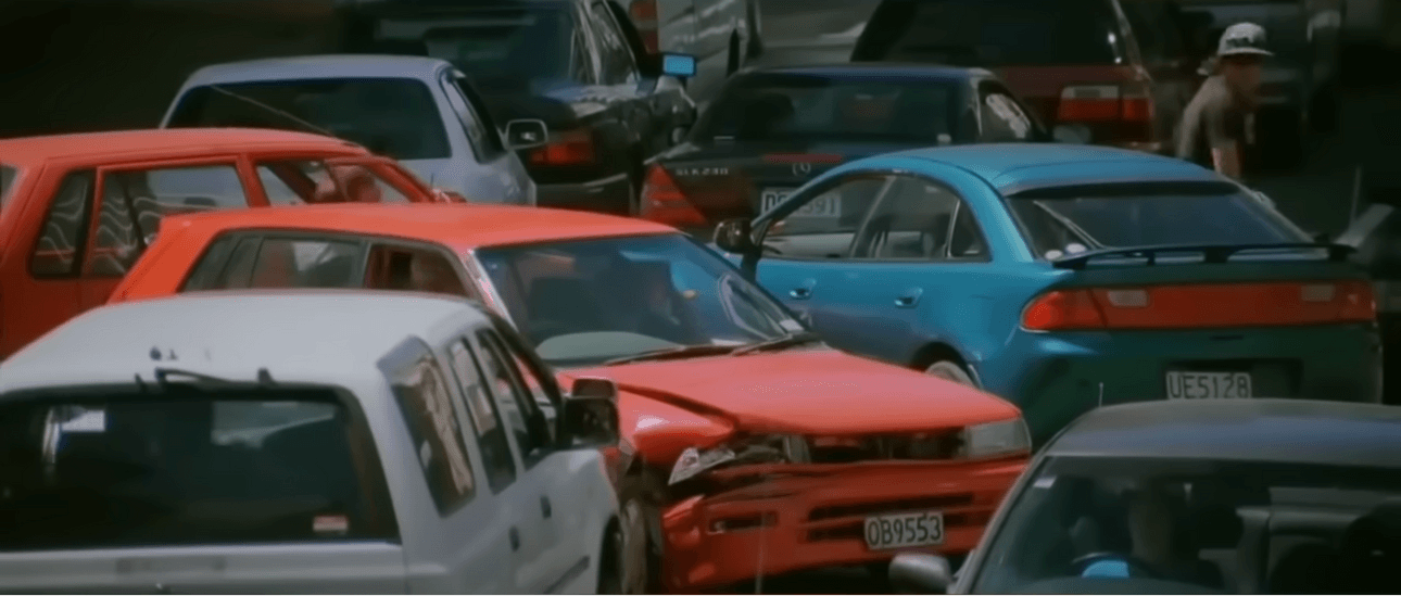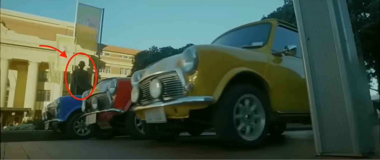This could have been the moment of cultural unity we’ve been waiting for, when the movie acknowledges the actual connection between India and Aotearoa, and that we’re not so different after all. But maybe Gandhi just doesn’t fit the international playground vibe of Wellington city. He’s visible for just a split second, before he’s out of shot and the cars drive through the station entrance.