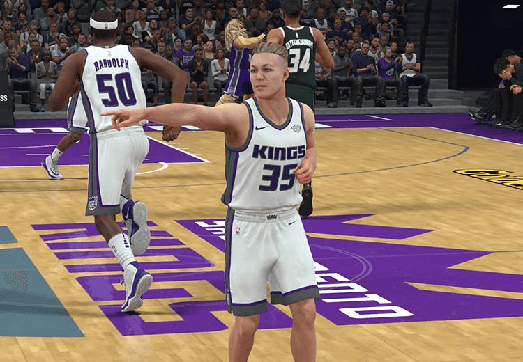 When I finally got control of my player, I had to impress on the streetball court in the hopes of… well, I didn’t yet know. Forgetting Chip’s shitty DJ-ing career, perhaps? I was a little rusty and hardly the best player on court. Yet, Chip/DJ somehow caught the attention of a scout from the Sacramento Kings, the team I’d selected as my favourite when creating Chip (I should have been less honest!). After a series of scrappy scrimmages in the Kings’ practice facility, Chip/DJ was offered a roster spot, and soon enough he was getting minutes in the NBA.