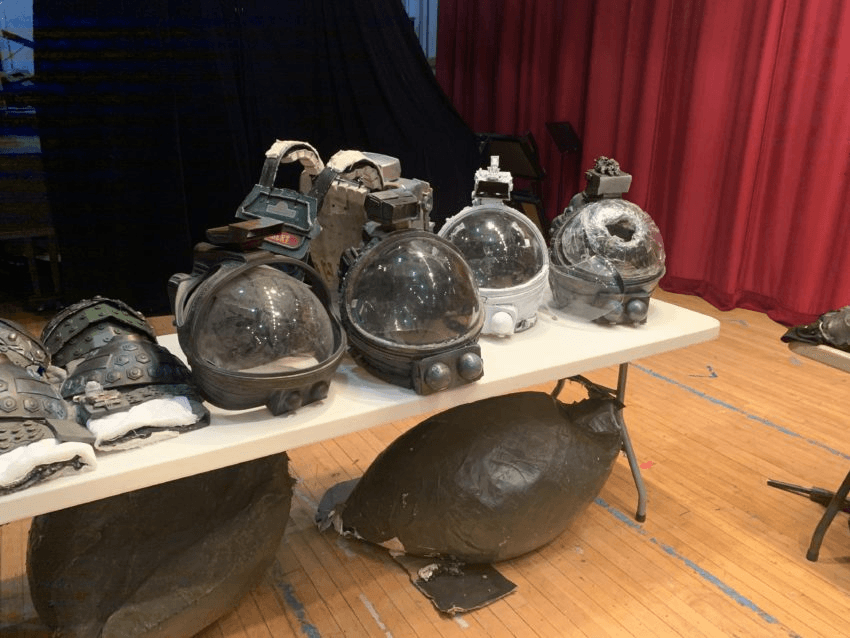 These are talented kids who repurpose what they have available to them. Everything is made out of cardboard, recycled junk, broken toys, and yes – props from other productions that have been sacrificed to the cause.