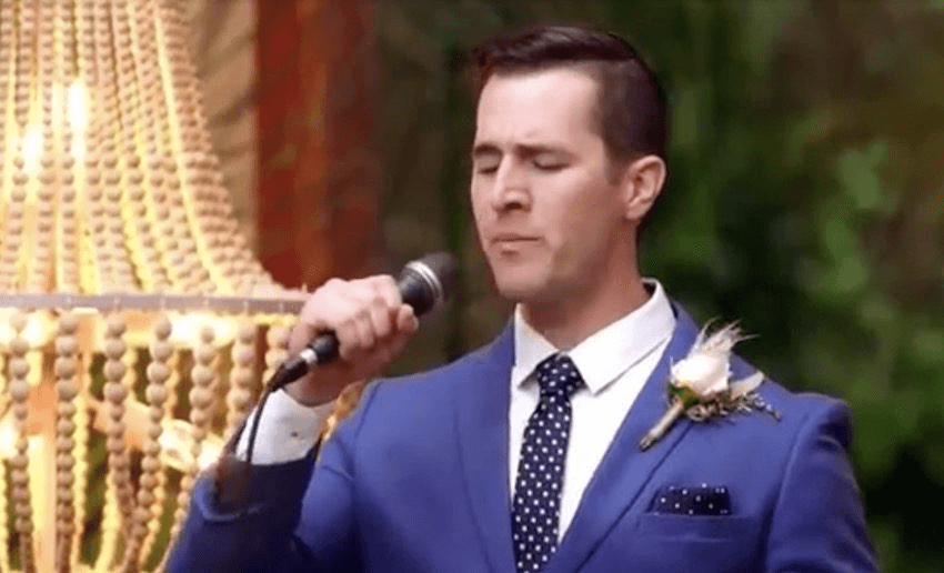 Honestly, murder me and make Matthew sing ‘Sway’ at my funeral while waltzing with my rotting corpse. It’s my dying wish. The 29-year-old virgin took to the microphone during their reception to announce that he was all in on the experiment, and ready to do all the things he had never done before (SEX and SINGING). He then started to sing the Dean Martin classic, basically a jacked, sexless Bublé with nothing left to lose. His voice was treacle. His voice was the brown note. His voice was perfection. It doesn’t even matter that he forgot the words halfway through and went silent – Cam and Jules have got a solution for that. / AC