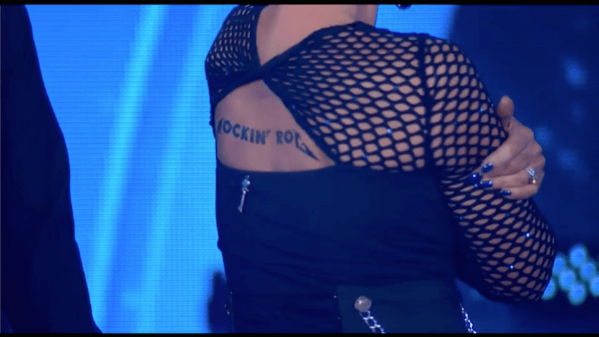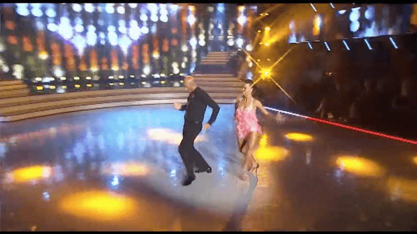 Yes, that is a tattoo on Rockin’ Rog’s dance partner, which unfortunately looks more like a brand than any tattoo a human being would deign to receive. No, I do not think it is permanent. Yes, they joke about it being permanent and yes, I think even if it is a temporary tattoo, it is too permanent. However, this is not Tattoos with the Stars (nobody commission that), it is Dancing with the Stars. And we are here to waltz.