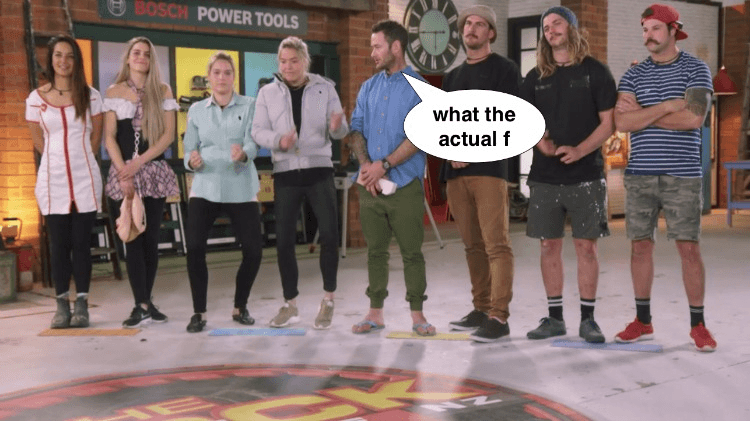 Do Over week began with teams Purple and Orange doing over teams Green and Blue in Dinner Wars. Serial smilers Stace and Yanita masterminded Operation Zero Issues, sending shockwaves through the site. “I don’t care about playing the game, but don’t say you’re the nice girls and then do this,” a freshly smote Julia seethed in the red room of truth.